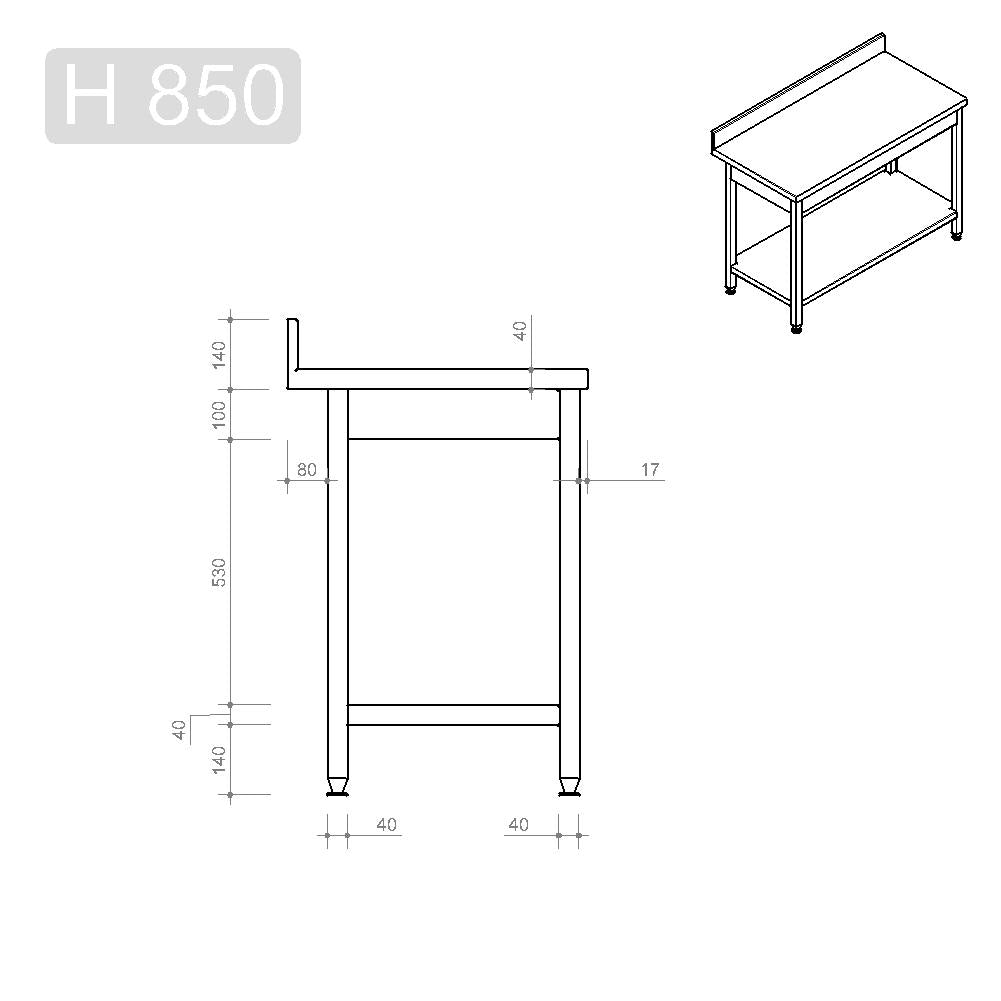 Arbeitstisch Profi 600 / mit Grundboden & Aufkantung B:1200