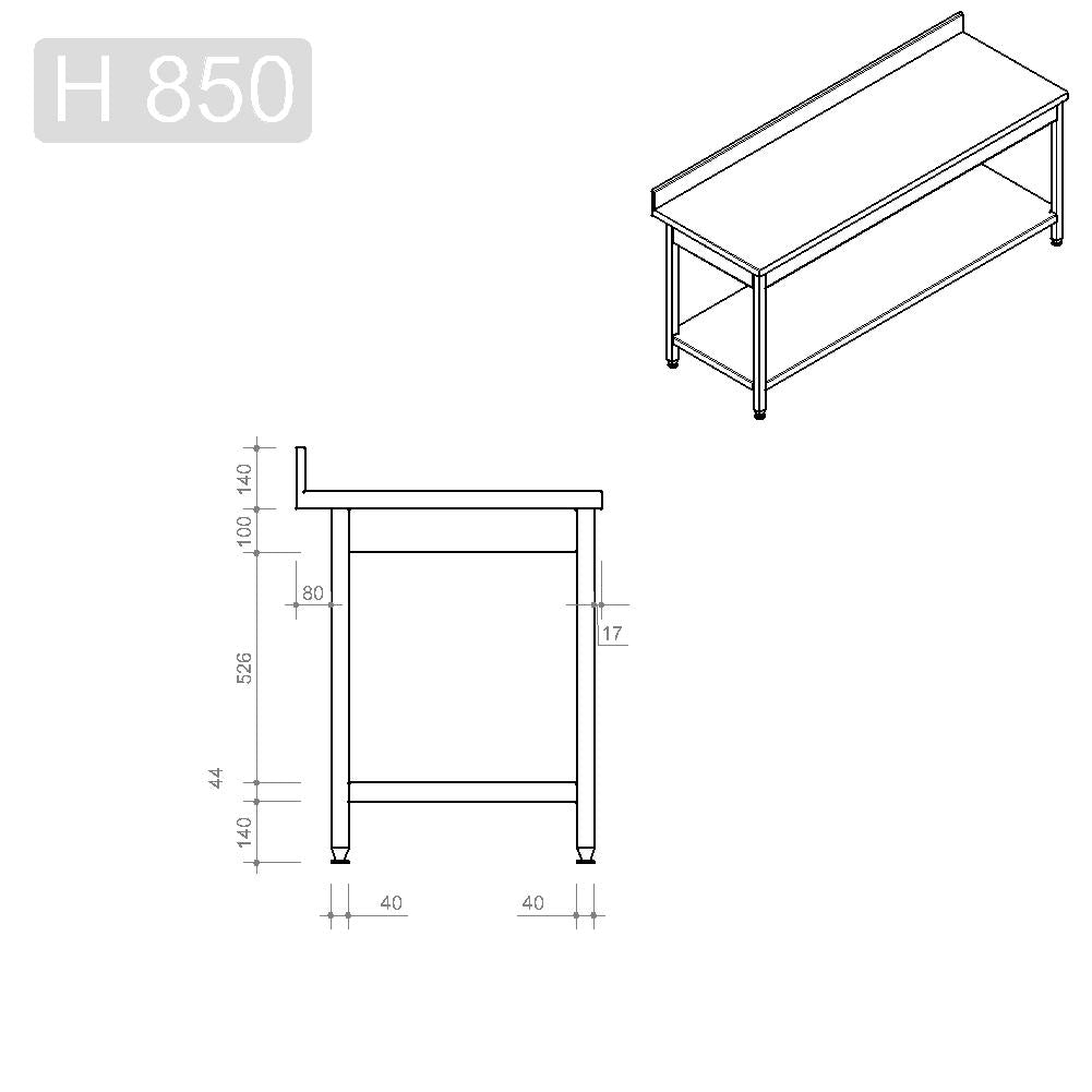 Arbeitstisch Profi 700 / mit Grundboden & Aufkantung B:2000