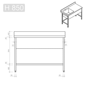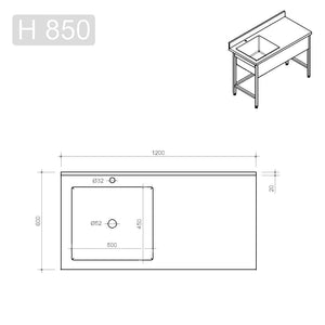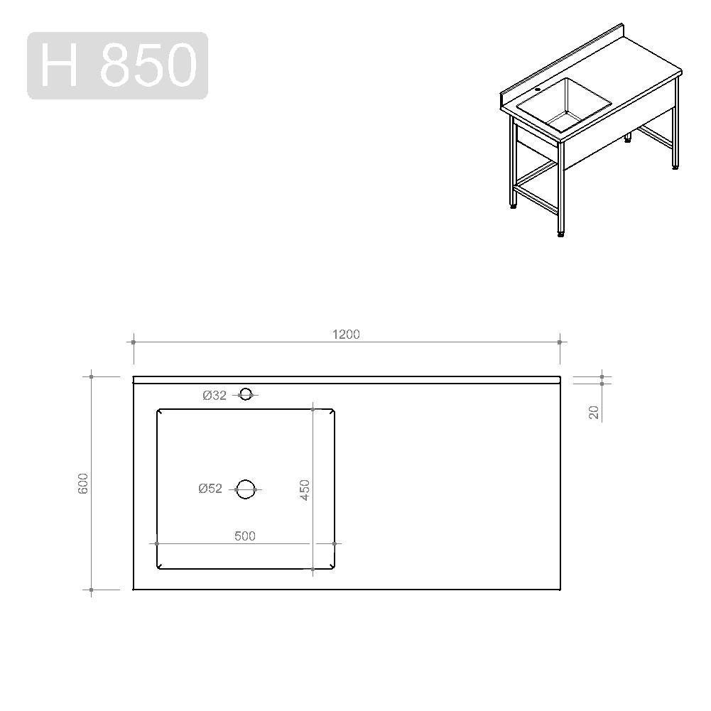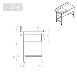Spültisch Profi 600 / 1 Becken links Aufkantung B:1200